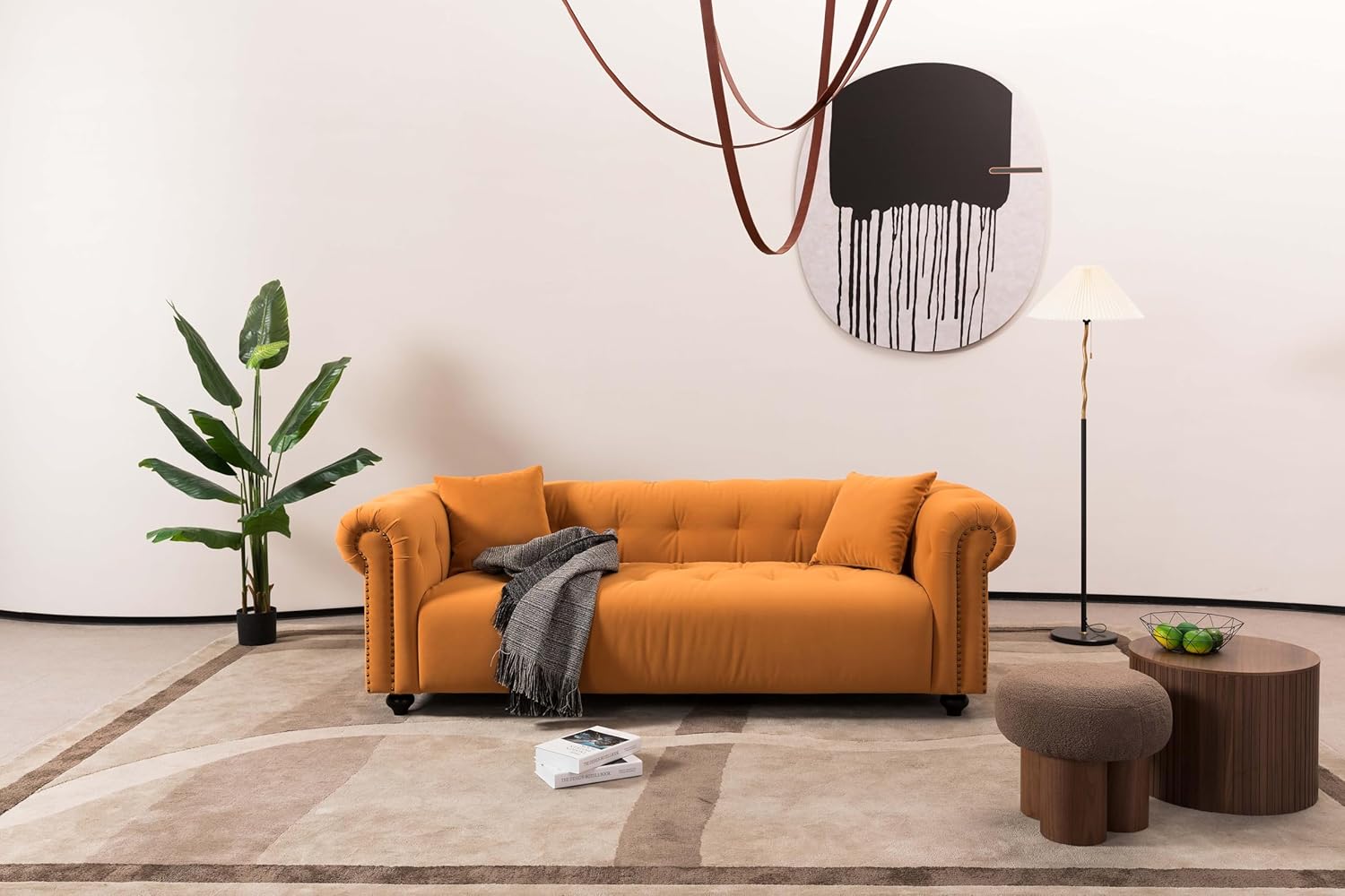 90″ Medieval Loveseat Sofa,Vintage Couch with Rivet Handrails,Roll Armrests, Solid Wood Frame,Comfy Deep Seats and Pillows,Ideal for Living Room,Apartment,Office, Dorm (Orange)