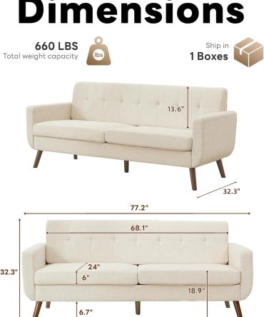 77.2″ W Linen Sofa Couch, Decor Loveseat Couches for Living Room, Button Tufted Upholstered Small Couch for Bedroom, Solid, and Easy to Install Love Seats Furniture, Beige