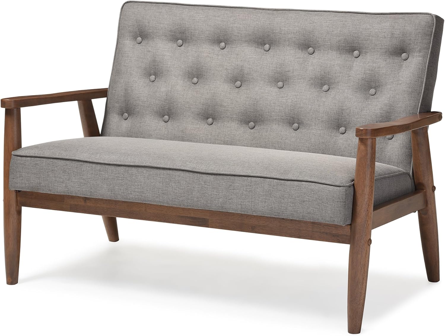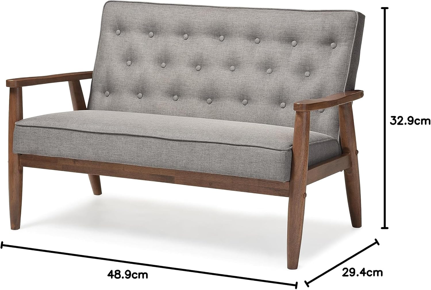 Retro Modern Grey Fabric Upholstered Wooden 2-Seater Loveseat